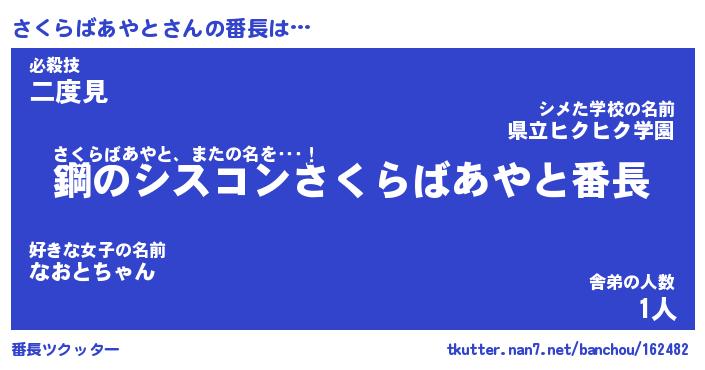 | 男性向けラノベタイトル風あだ名 | 『サクラバアヤトアートオンライン』 |