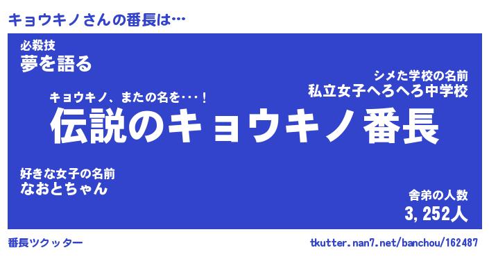 | 伝説のあだ名 | 『伝説のスナイパーキョウキノ』 |