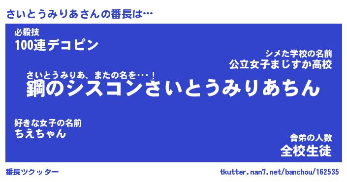 | 伝説のあだ名 | 『封印されしスナイパーさいとうみりあ』 |