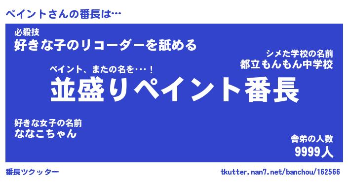 | 肩書あだ名 | 『ペイント店長』『ペイント国家主席』 |