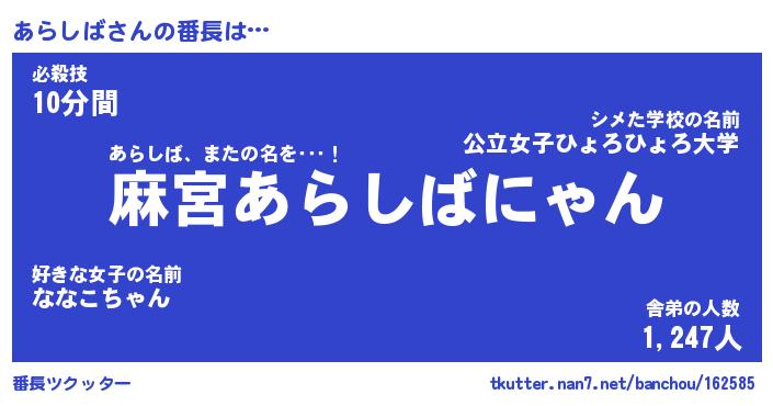 | 意味不明あだ名 | 『ペロリンあらしば』『永久保存あらしば』 |