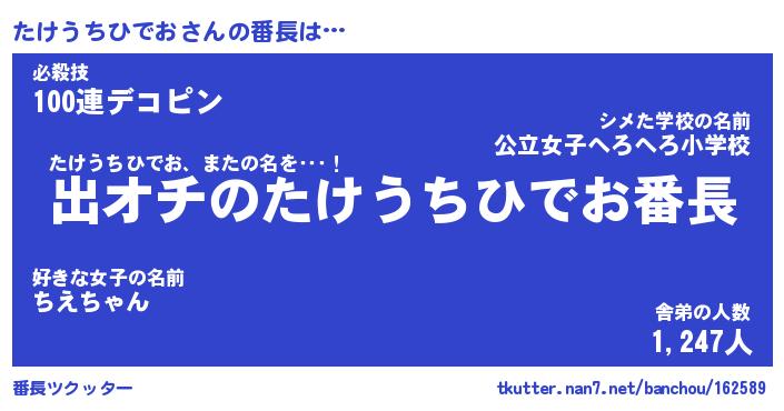 | 肩書あだ名 | 『たけうちひでお店長』 |