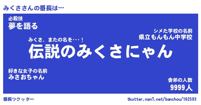 | 意味不明あだ名 | 『ペロリンみくさ』『みくさフォーエバー』 |