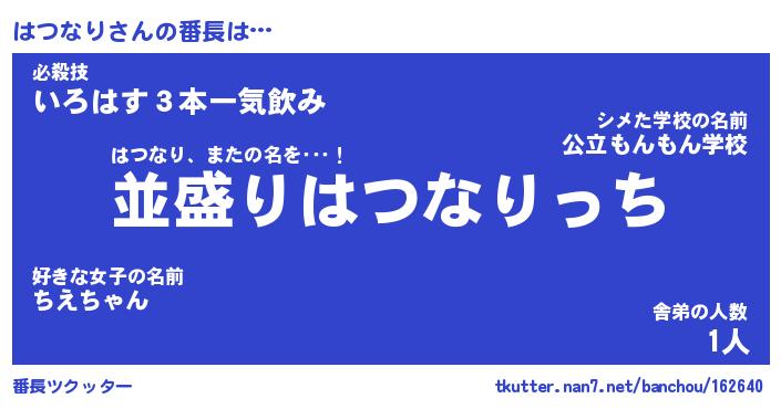 | 意味不明あだ名 | 『ペロリンはつなり』『永久保存はつなり』 |