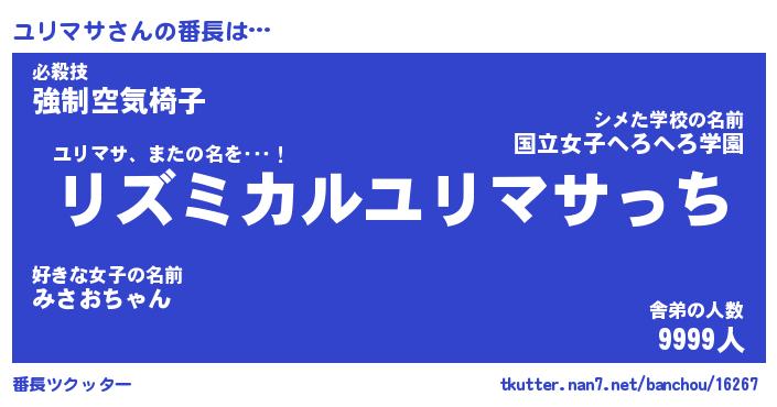 | 伝説のあだ名 | 『伝説のスナイパーユリマサ』 |