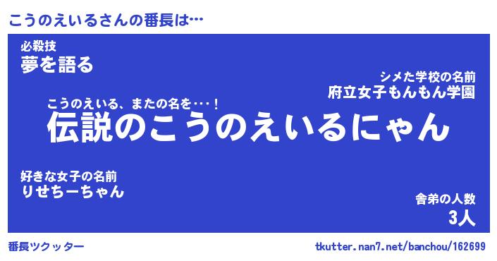 | 意味不明あだ名 | 『ペロリンこうのえいる』 |