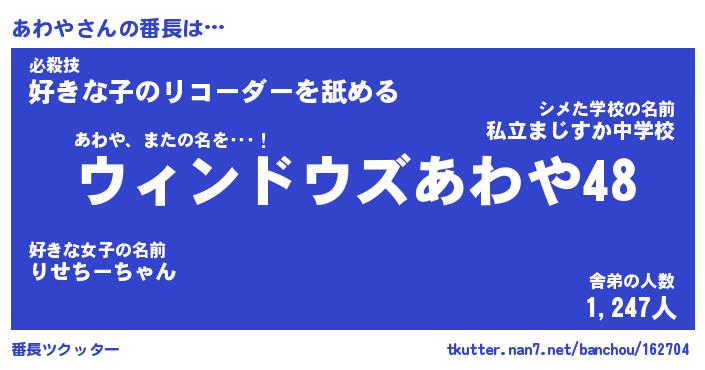 | ヒーロー風カッコイイあだ名 | 『スーパーアワヤ』『ウルトラあわやマン』 |