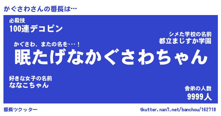 | 伝説のあだ名 | 『封印されしスナイパーかぐさわ』 |
