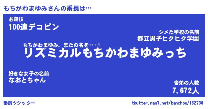 | 伝説のあだ名 | 『伝説のスナイパーもちかわまゆみ』 |