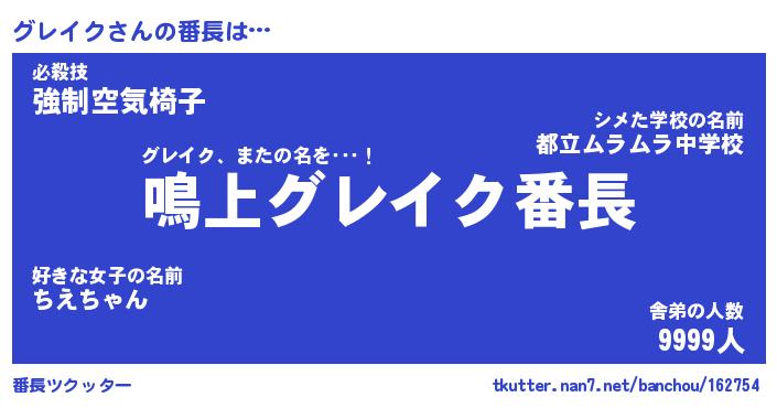 | ヒーロー風カッコイイあだ名 | 『スーパーグレイク』『暗黒騎士グレ』 |