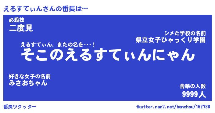 | 伝説のあだ名 | 『不死鳥のスナイパーえるすてぃん』 |