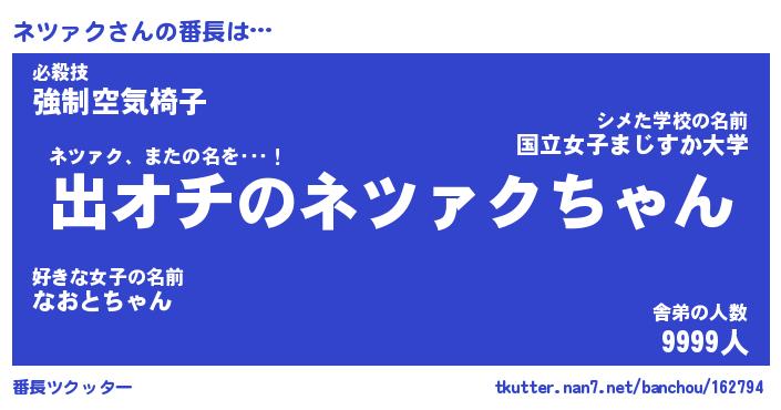 | 意味不明あだ名 | 『ペロリンネツァク』『永久保存ネツァク』 |