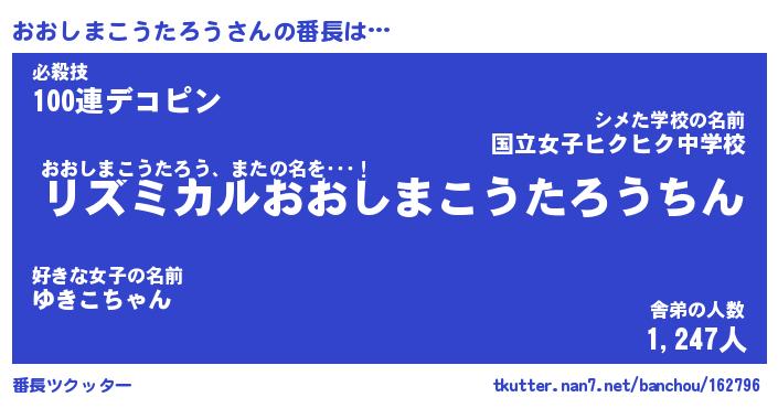 | 肩書あだ名 | 『おおしまこうたろう店長』 |