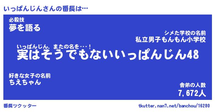 | ヒーロー風カッコイイあだ名 | 『スーパーイッパンジン』『幻影騎士イッ』 |