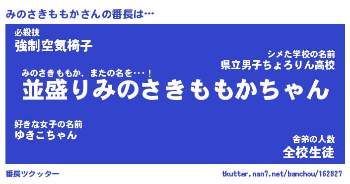 | 伝説のあだ名 | 『不死鳥のスナイパーみのさきももか』 |
