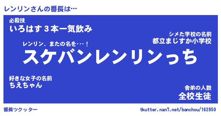 | 意味不明あだ名 | 『ペロリンレンリン』『永久保存レンリン』 |