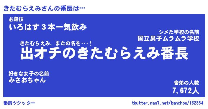 | ヒーロー風カッコイイあだ名 | 『スーパーキタムラエミ』『炎刃騎士キタ』 |