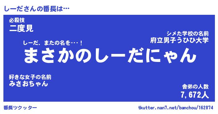 | 伝説のあだ名 | 『伝説のスナイパーしーだ』 |