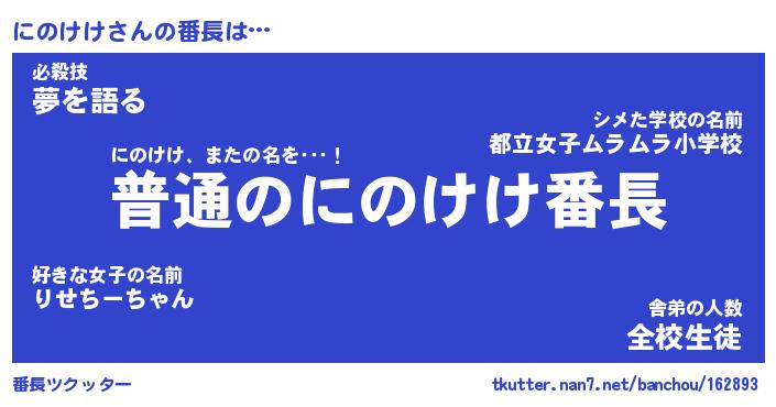 | 意味不明あだ名 | 『ペロリンにのけけ』『永久保存にのけけ』 |