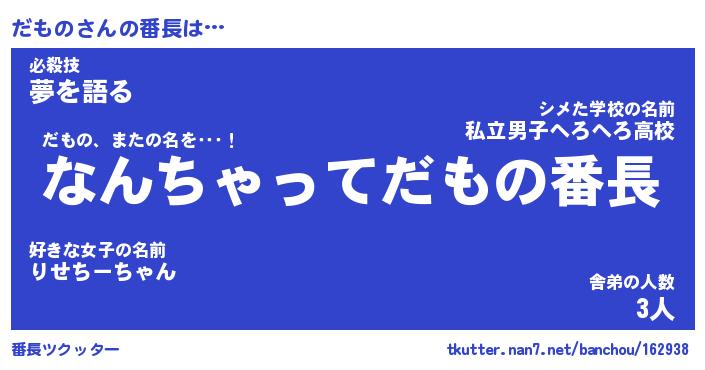 | ヒーロー風カッコイイあだ名 | 『スーパーダモノ』『ウルトラだものマン』 |