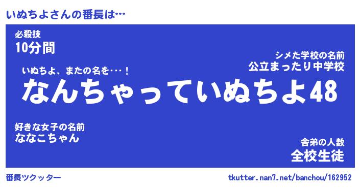 | ヘコむあだ名 | 『いぬにゅー』『牛乳』『いぬお』 |