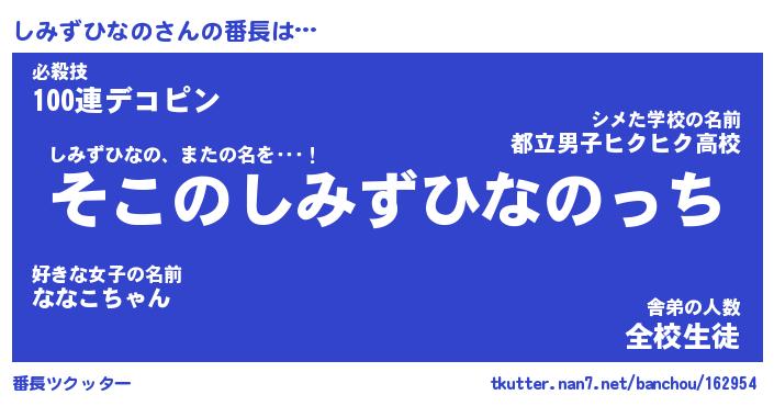 | 伝説のあだ名 | 『不死鳥のスナイパーしみずひなの』 |