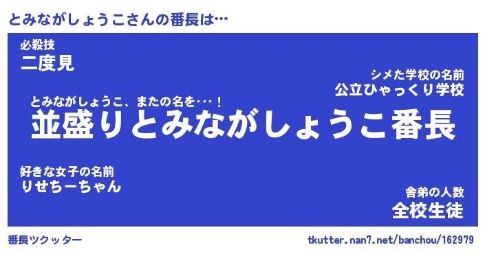 | 肩書あだ名 | 『とみながしょうこ社長令嬢』 |