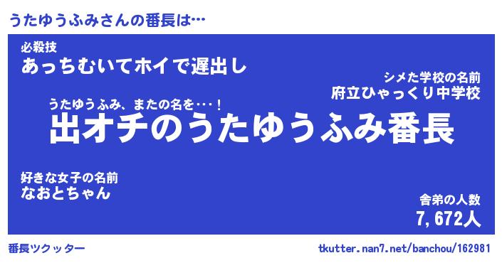 | 肩書あだ名 | 『うたゆうふみ店長』『うたゆうふみ団長』 |