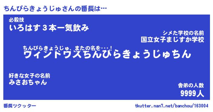 | 伝説のあだ名 | 『伝説のスナイパーちんぴらきょうじゅ』 |