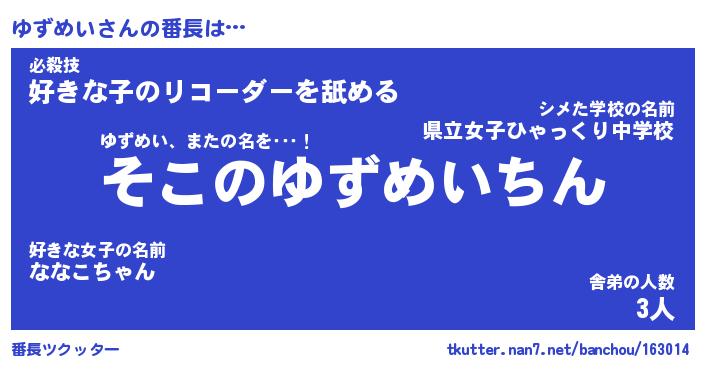 | 意味不明あだ名 | 『ペロリンゆずめい』『永久保存ゆずめい』 |