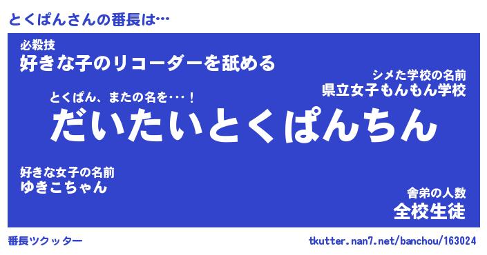 | 肩書あだ名 | 『とくぱんCEO』『とくぱん国家主席』 |