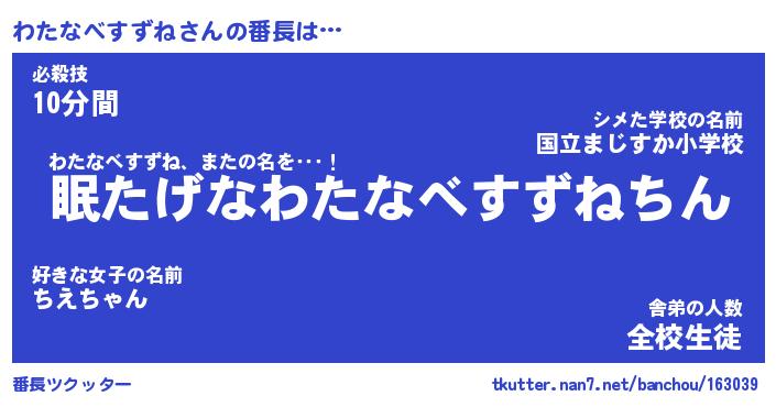 | 伝説のあだ名 | 『封印されしスナイパーわたなべすずね』 |