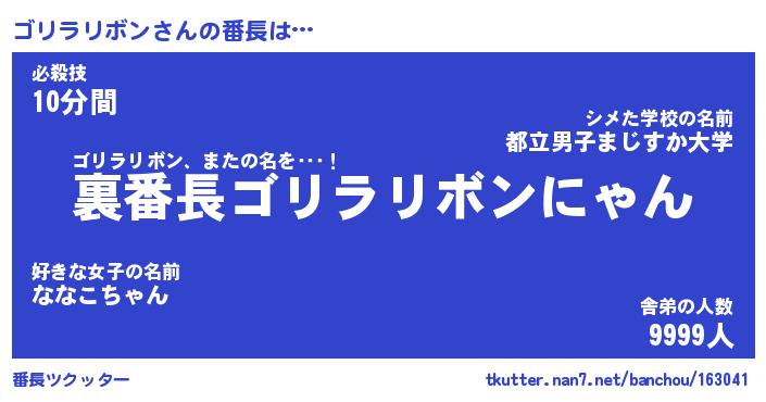 | 意味不明あだ名 | 『ペロリンゴリラリボン』 |