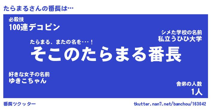 | 意味不明あだ名 | 『ペロリンたらまる』『永久保存たらまる』 |