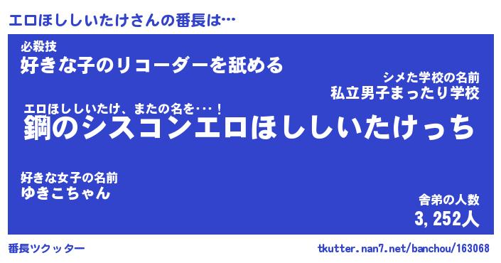 | 伝説のあだ名 | 『封印されしスナイパーエロほししいたけ』 |