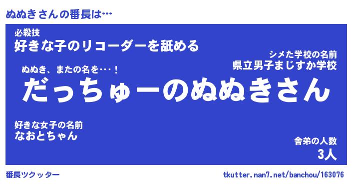 | 意味不明あだ名 | 『ペロリンぬぬき』『ぬぬきフォーエバー』 |