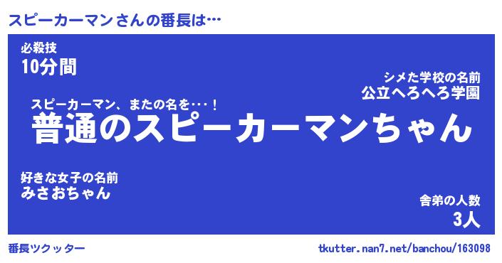 | ヘコむあだ名 | 『スピふぇ~』『牛乳』『スピっぺ』 |