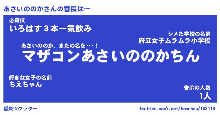 | ヘコむあだ名 | 『あさもー』『なまこ酢』『あさっぺ』 |