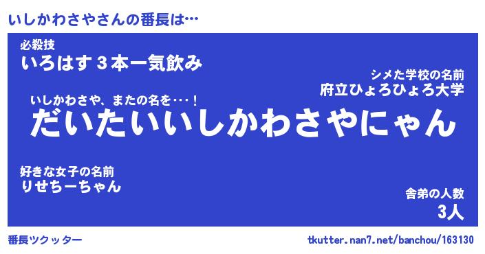 | ピコ太郎風あだ名 | 『イコ史郎』『ピイ一郎』『イシ六郎』 |