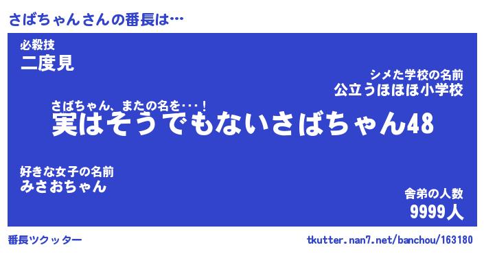 | 肩書あだ名 | 『さばちゃん社長』『さばちゃん総理大臣』 |