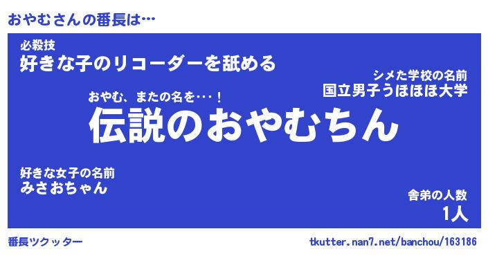 | 肩書あだ名 | 『おやむ社長』『おやむ大統領』 |