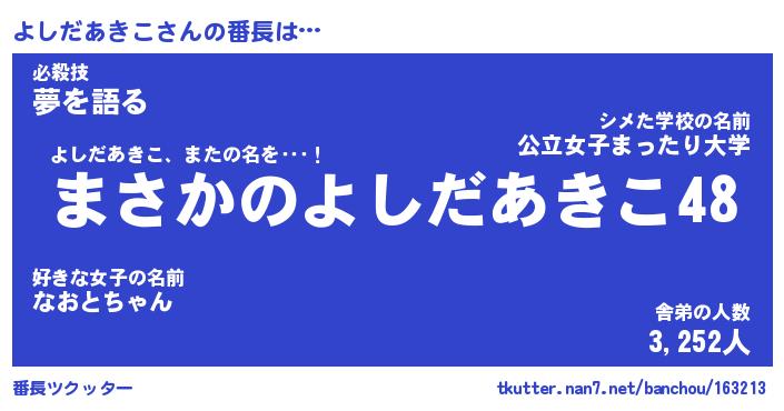 | 伝説のあだ名 | 『伝説のスナイパーよしだあきこ』 |