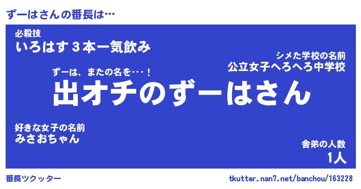 | 肩書あだ名 | 『ずーは社長』『ずーは総理大臣』 |