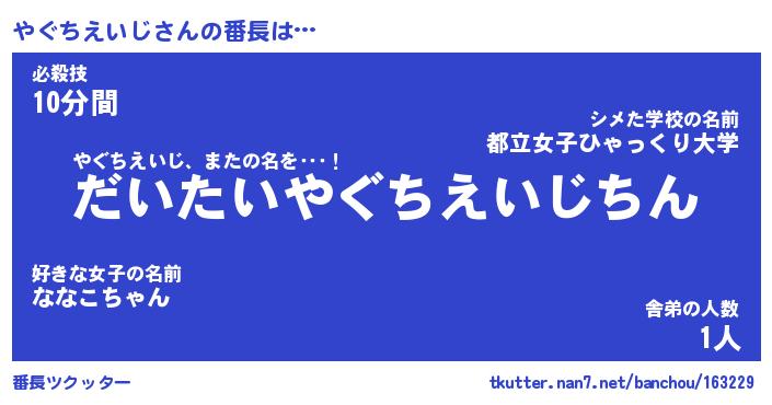 | 肩書あだ名 | 『やぐちえいじ御曹司』 |