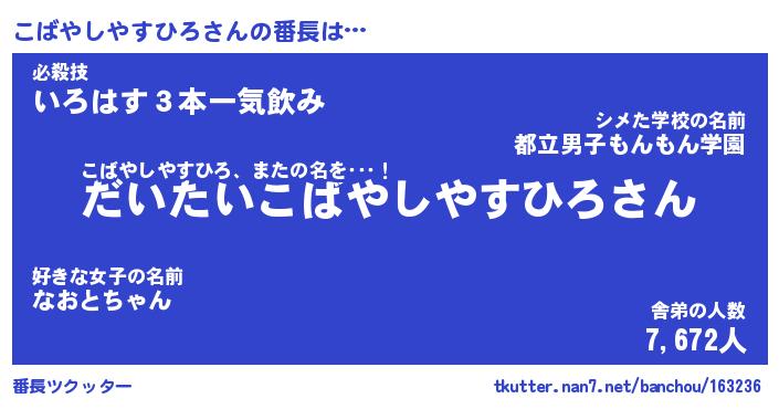| ヘコむあだ名 | 『こばっふぃ~』『なまこ酢』 |