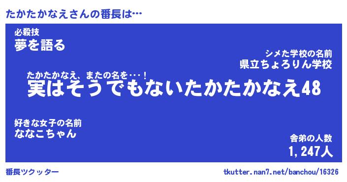 | ヒーロー風カッコイイあだ名 | 『スーパータカタカナエ』『銀牙騎士タカ』 |