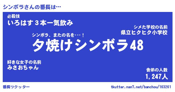 | 意味不明あだ名 | 『ペロリンシンボラ』『永久保存シンボラ』 |