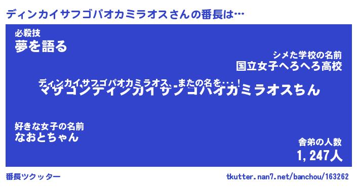 | 肩書あだ名 | 『ディンカイサフゴパオカミラオス社長』 |