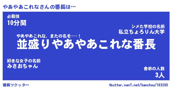 | ヒーロー風カッコイイあだ名 | 『スーパーヤアヤアコレナ』 |