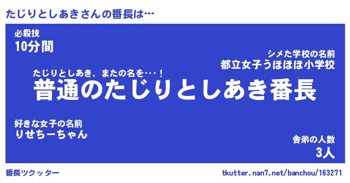| 伝説のあだ名 | 『不死鳥のスナイパーたじりとしあき』 |